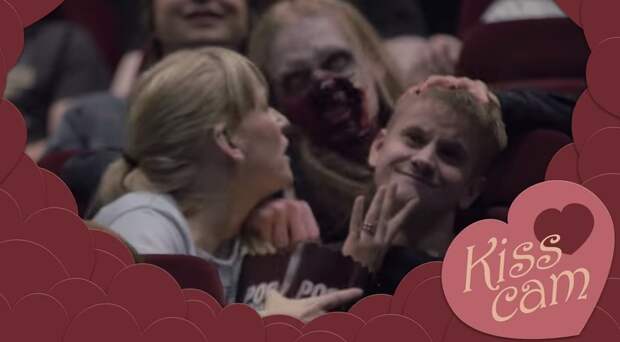 You’ve seen it before, though more likely in a sporting arena – a roving camera singles out couples, and then an audience of people watch as said couple awkwardly kiss as a result of peer pressure.