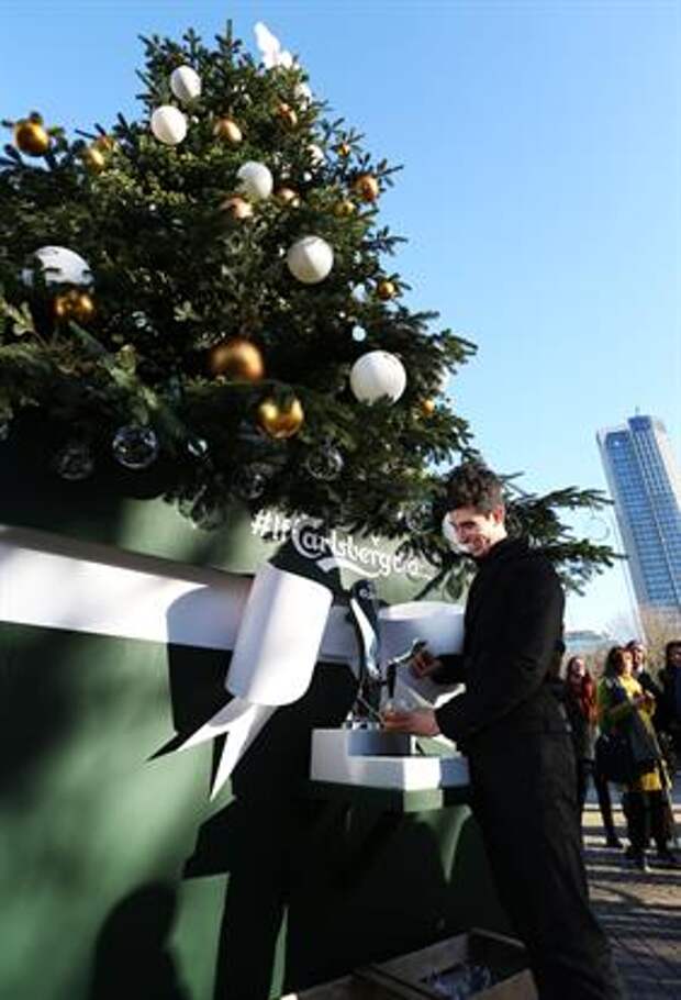 Carlsberg unveiled a beer dispensing Christmas Tree for one day only with glass shaped boubles for passers by to drink from.